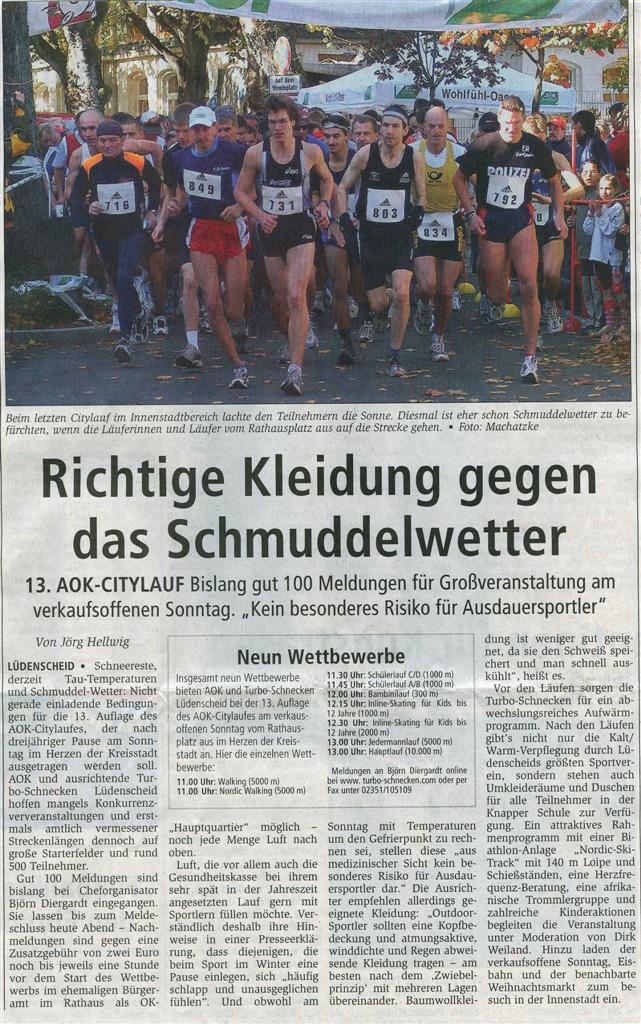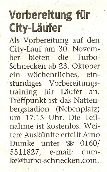WR_11.10.2001 City-Benefizlauf: Turbo-Schnecken erwarten eine große Beteidigung