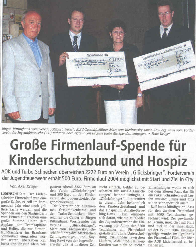 WR_15.10.2001 Turbo-ASchnecken helfen über 300 Bergstädter für Kinder in USA